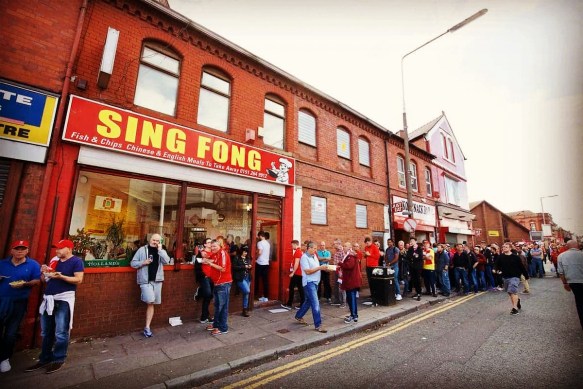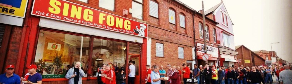 The Sing Fong chippy has stood in the shadow of the Kop for as long as I can remember. I’ve no idea how long its actually been there, but It’s as much a part of Anfield’s tapestry as the cries of ‘hat,cap, scarf or a badge,’ or ‘Red All Over the Land, yer Liverpool fanzine,’ that form the soundtrack to any matchday. If the Sing Fong could speak, what stories would it tell?